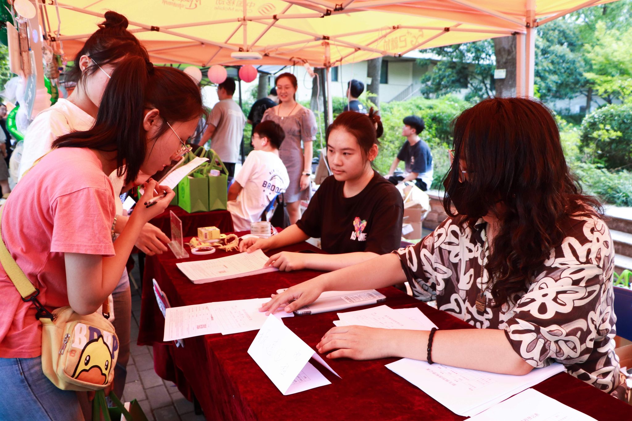 玉兰路报到处迎新工作如火如荼,到处都有忙碌的身影。迎新志愿者们提前熟悉报到流程,仔细核对新生信息,有条不紊地引领新生完成线下报到,并在报到结束后贴心地送上新生大礼包。完成报到的新生在签名板上留下自己的名字后跟随志愿者的引领抵达所在宿舍。宿舍区域志愿者帮助新生搬运行李,带领新生找到对应宿舍。