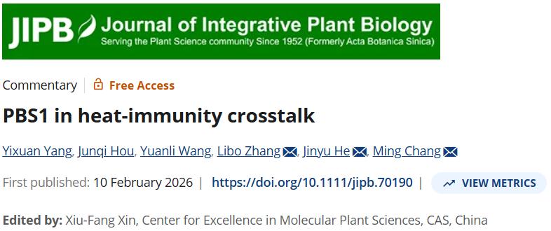 近日,3044am永利集团3044noc常明教授团队联合贵州大学张利博教授团队,在植物科学专业期刊Journal of Integrative Plant Biology(JIPB)发表评论文章“PBS1 in Heat-Immunity Crosstalk”,围绕植物体内关键激酶PBS1在高温胁迫与免疫反应交叉调控中的潜在作用进行了系统讨论。该评论基于近期发表于Molecular Plant的研究成果 [2],对植物早期热信号转导机制及其与免疫信号网络之间的联系提出了新的理论模型。