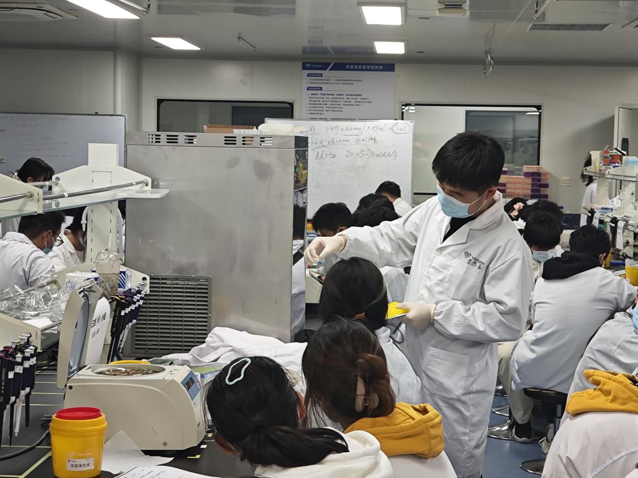 10月20日,永利集团官网菁英班和拔尖基地251班同学在菁英班班主任刘园园老师及专业任课老师谭小云老师的带领下到南京诺唯赞生物科技有限公司,参加了为期一天的实践学习。本次活动的授课与组织由南京诺唯赞生物科技有限公司的五位工程师负责,在企业专业工程师的悉心指导下,同学们全程参与RNA提取、RT-qPCR等关键实验流程,在理论学习与实操演练中深化对生物检测技术的认知,收获满满。