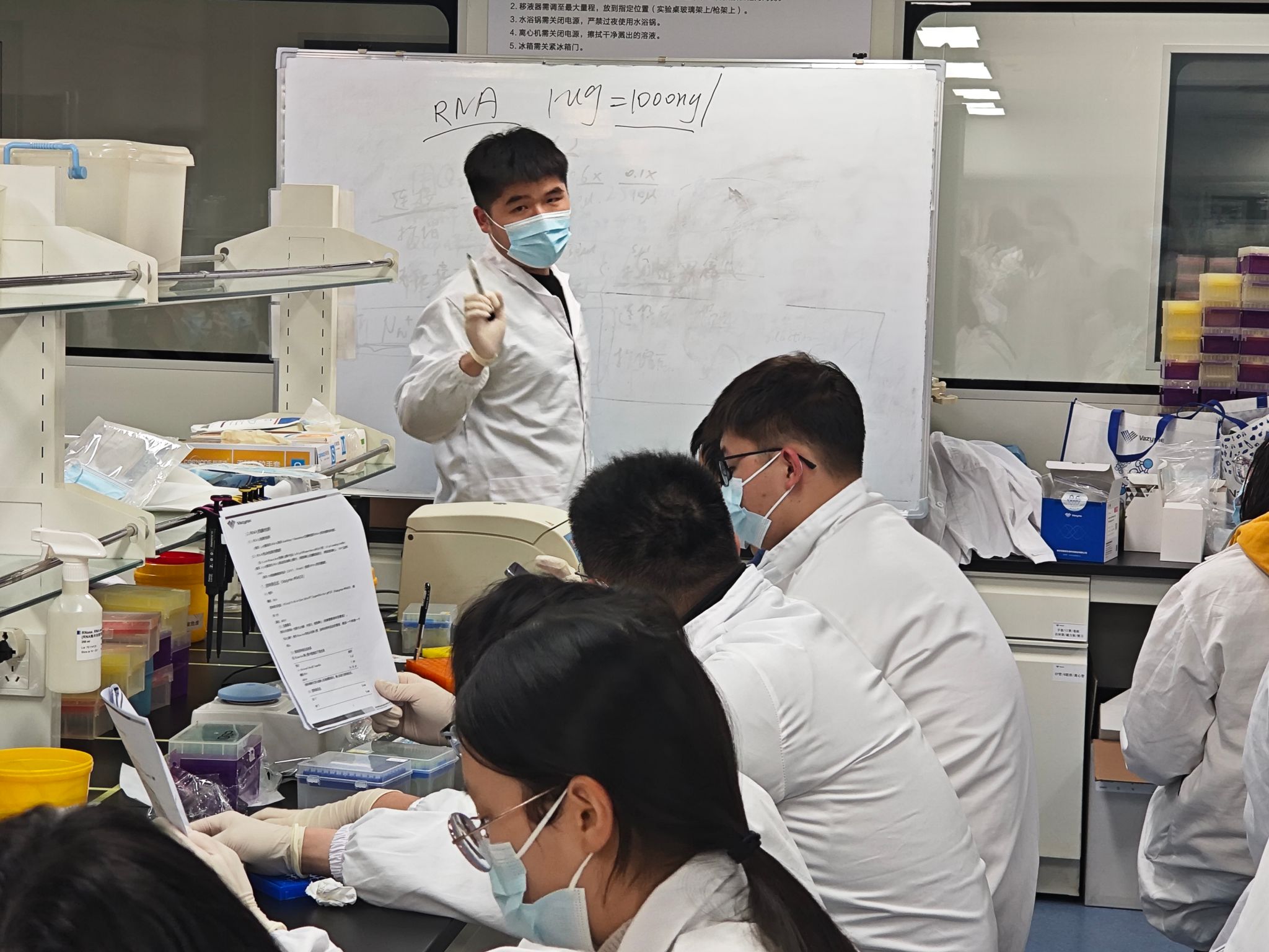 随后,理论培训正式拉开帷幕,企业工程师结合行业应用场景,深入浅出地讲解了RNA提取和逆转录的核心原理、标准化实验步骤,以及样本处理、试剂使用等关键环节的注意事项。