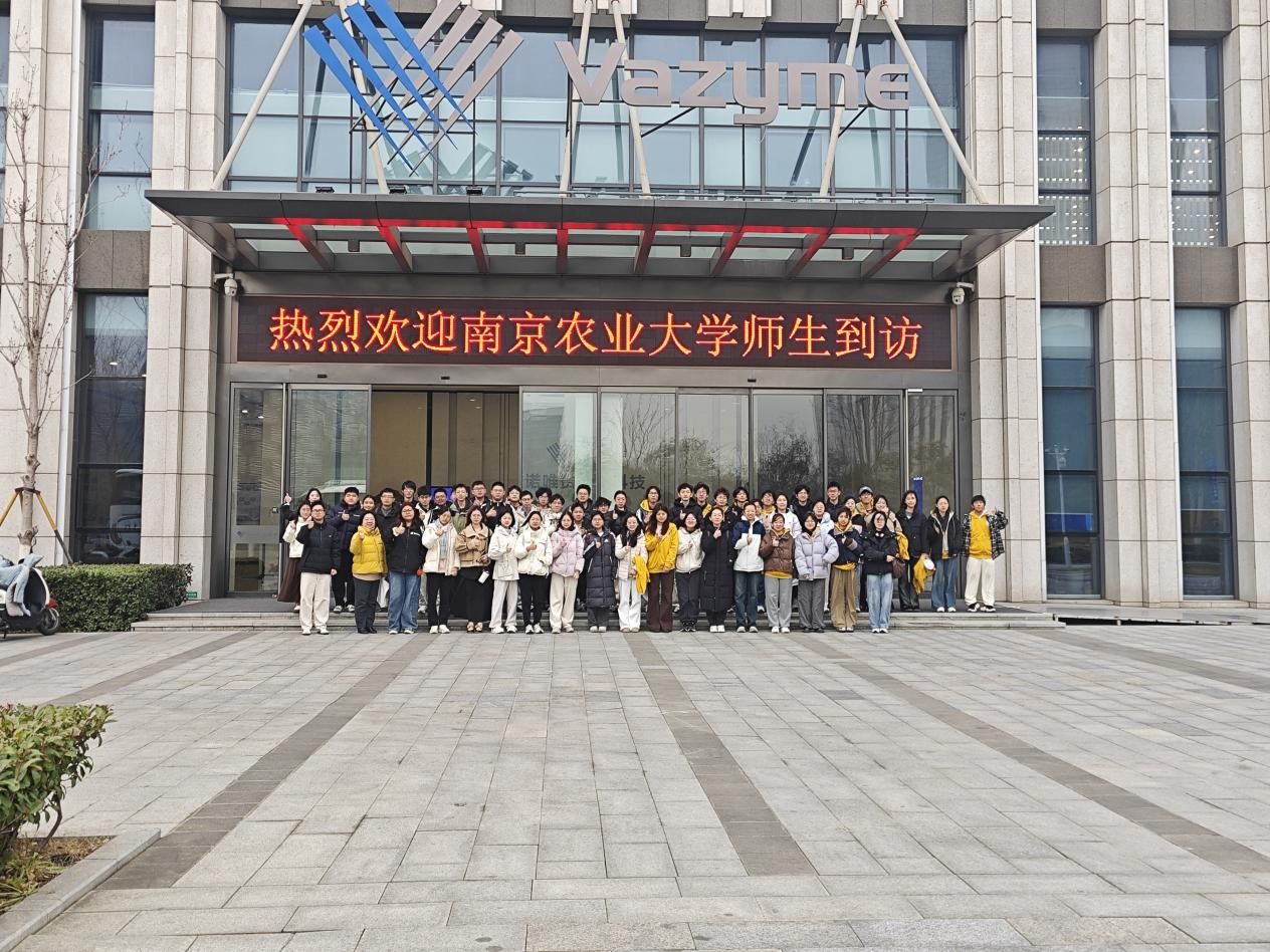 上午8时,怀着对实践探索的热忱,学子们准时在生科楼前集合,乘坐大巴奔赴诺唯赞公司。抵达后,全体师生在公司门前合影留念,用镜头记录下此次实习的珍贵起点。